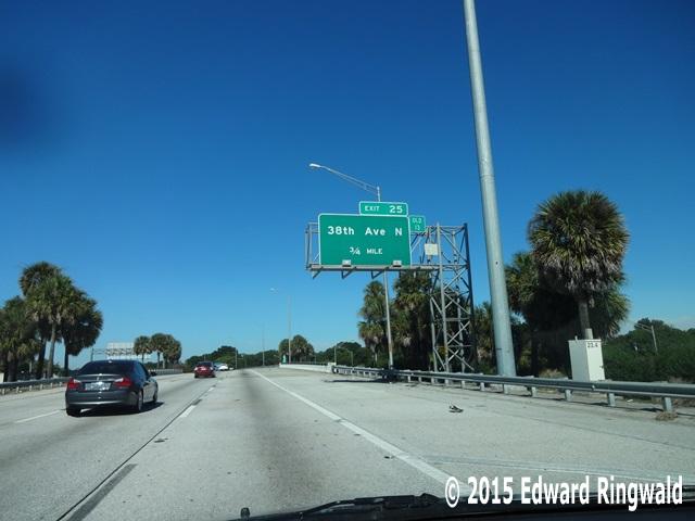 The fourth segment of Interstate 275 brought the highway from its temporary end at a point just south of 50 Av N to a point just south of 22 Av N, bringing interstate access to both 38 Av N and 22 Av N. When this section of Interstate 275 opened, a new temporary end was established at 22 Av N until Interstate 275 was extended further south to 5 Av N a couple of years later. An earlier version of Interstate275Florida.com combined both 22 Av N and the exit to the north when the highway was built, 38 Av N; for your convenience I have separated both the 22 Av N (Exit 24) and 38 Av N (Exit 25) topics.