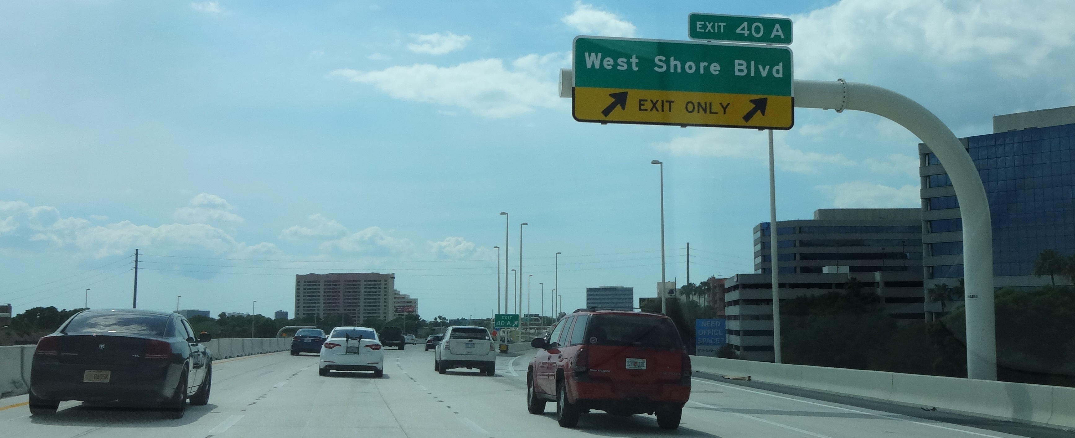 Continuing northbound on Interstate 275 through Tampa we pass through Westshore Blvd. When this stretch of Interstate 275 was constructed in 1962 originally as a westward extension of Interstate 4, it used to be a 4-lane highway featuring a full service entrance and exit. Evidence of the segment being a 4-lane highway is apparent by looking at the overpass pile caps at Westshore Blvd. as it passes under Interstate 275. In the mid-1970’s this segment was widened to 6 lanes as part of a widening and modernization project to enhance capacity during the morning and evening commute. In the mid- to late 1980’s the interchange at Westshore Blvd. was reduced from a full diamond to a half diamond to make room for capacity enhancements at Exit 39, the exit for FL 60 and Tampa International Airport.