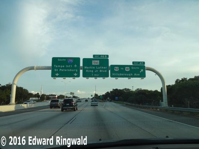 Meandering its way through central Tampa is the next exit on Interstate 275, US 92/Hillsborough Avenue. This segment is six lanes, with three lanes for northbound and three lanes for southbound.