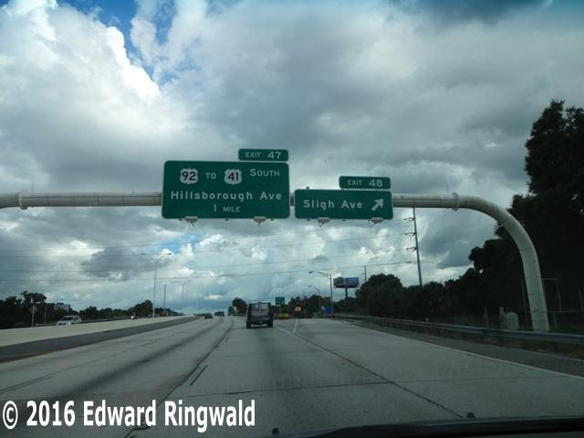 Sligh Avenue is a local street that basically connects Nebraska Avenue (US 41) with Florida Avenue (Business US 41) and beyond. The Lowry Park Zoo can be reached from this exit and proceeding west on Sligh Avenue past Florida Avenue.