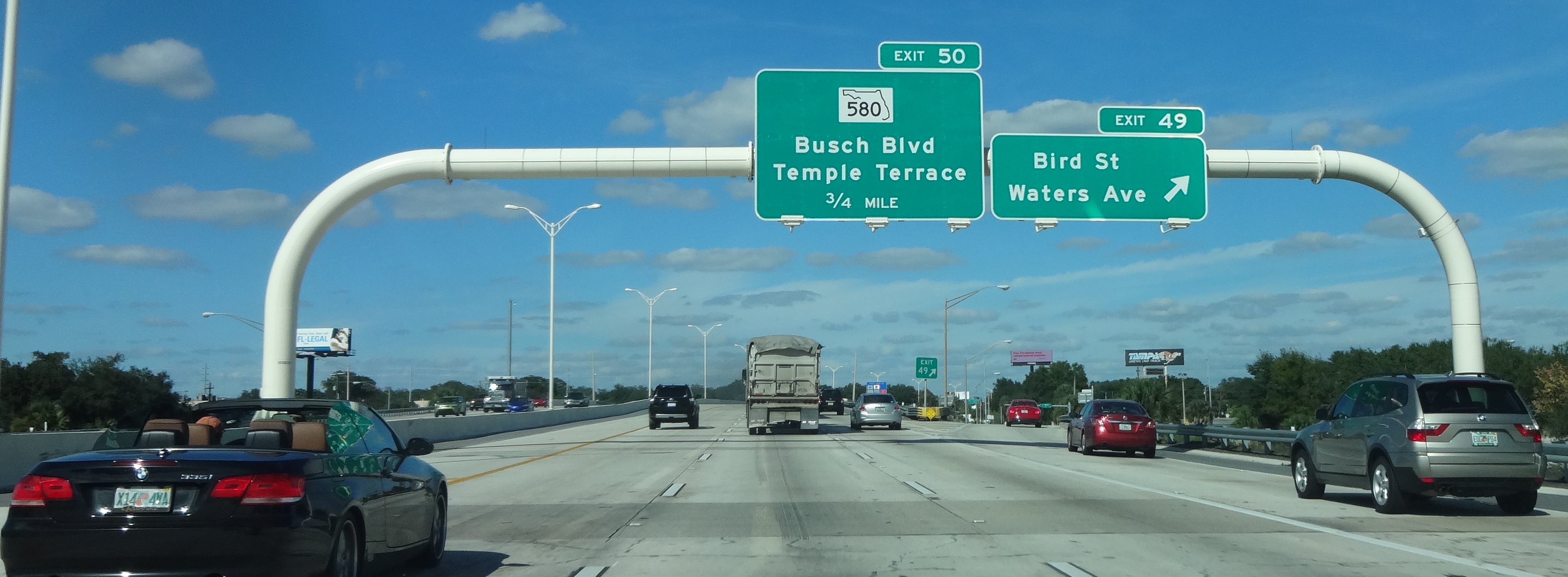 Winding its way through central Tampa and making the transition to north Tampa crossing the Hillsborough River is the next exit on Interstate 275, which is Exit 49, Bird Street and Waters Avenue. This exit is a southbound entry and northbound exit only interchange, which was built in 1967. This segment is six lanes, three for northbound and three for southbound.